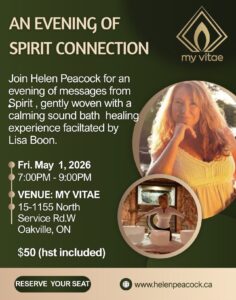 Join Helen Peacock for An Evening of Spirit Connection — a heart-centered group experience held in a beautiful new space at My Vitae. A healing space that your soul has been waiting for.