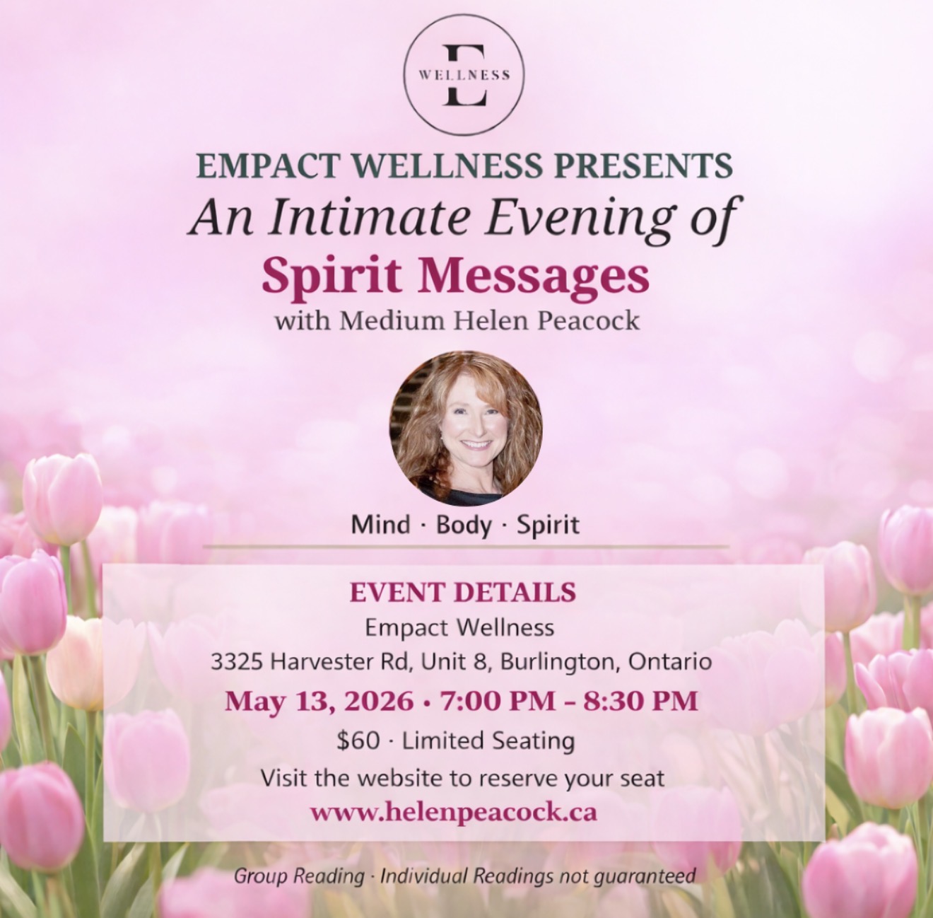 I’m so excited to be returning to the beautiful healing space at Empact Wellness for another Intimate Evening of Spirit Messages.